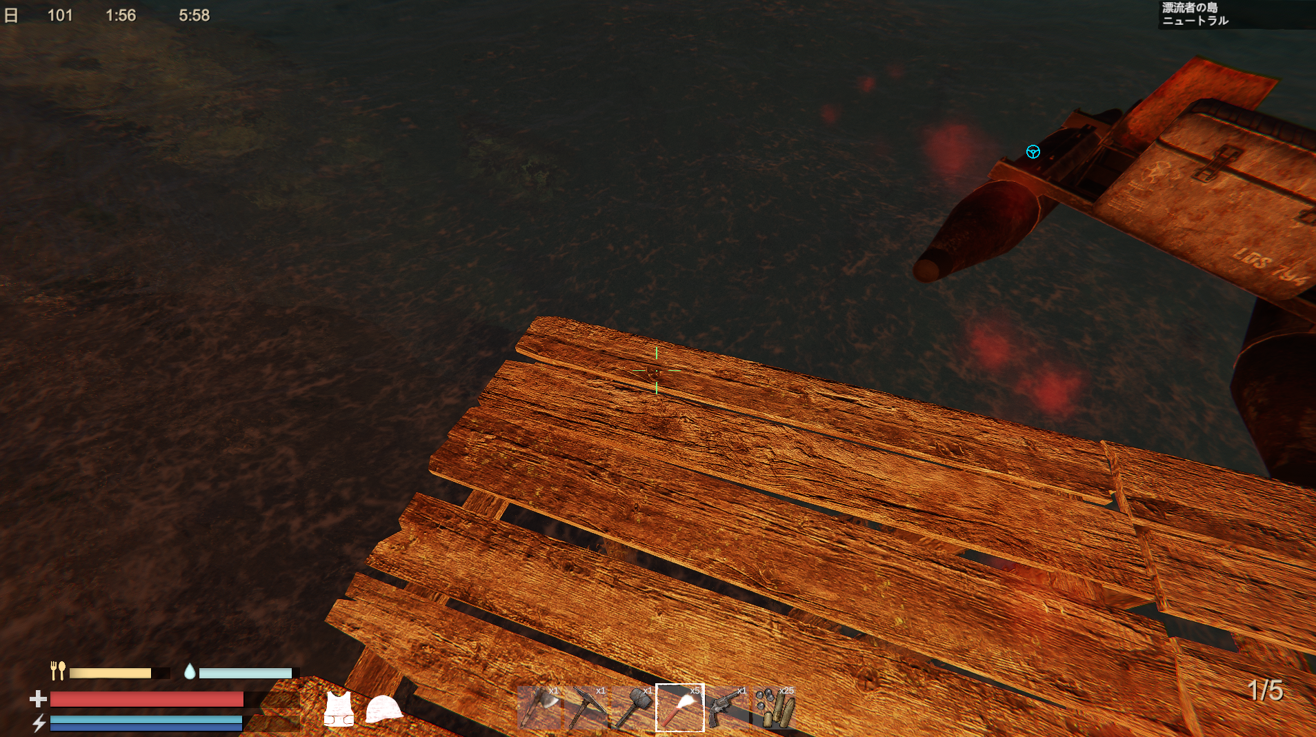 - 修理用ハンマーでカニを殴ると、血は出るがダメージは与えられていない