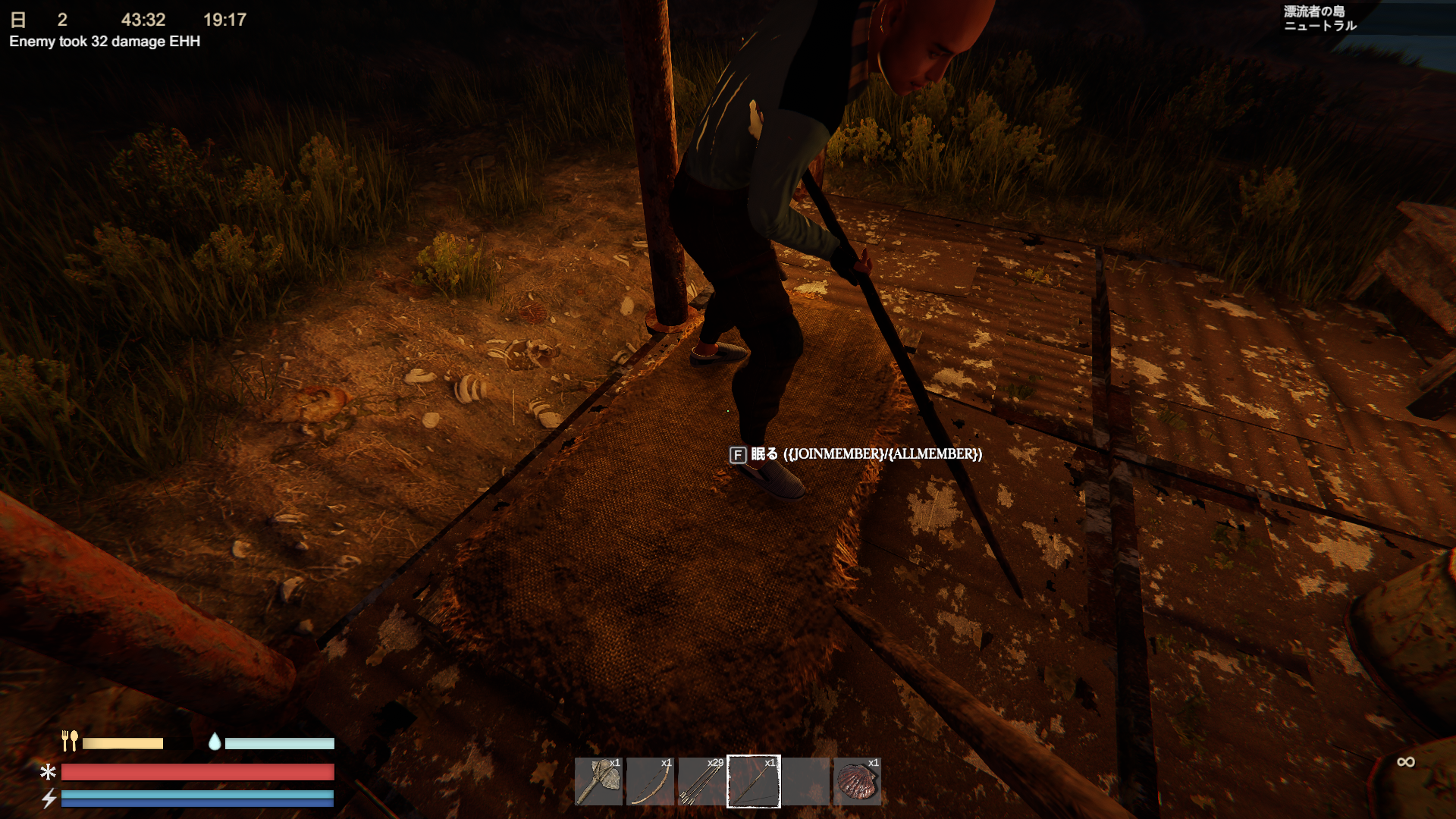 マルチプレイの場合、全員が同じベッドにアクションをおこすと眠れる。
