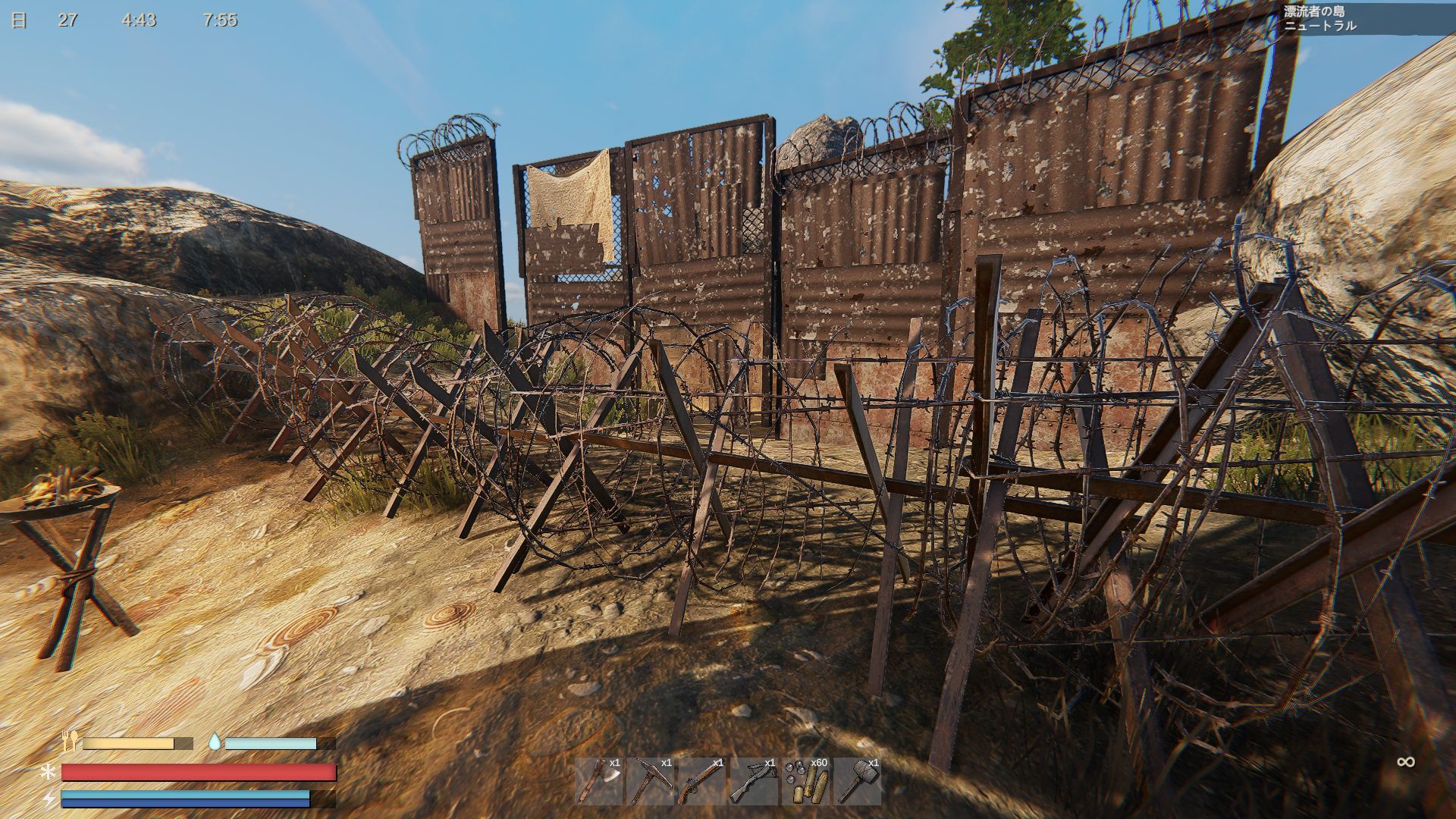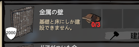 金属の壁が耐久2000でスクラップメタル3個で建設できるのでコスパ良い。
