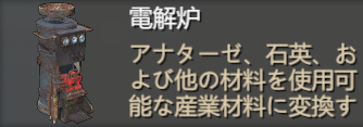 電解炉 v0.20で追加。 研究ティア4で習得できる。 小型発電機または大型発電機への接続が必要。 研究に必要なアイテム アイテム名 個数 上質な木材板 5 鋼インゴット 5 高度な部品 2 電子部品 7 クラフトに必要なアイテム アイテム名 個数 上質な木材板 10 鋼インゴット 10 高度な部品 5 電子部品 15 使い方 確認中。 電解炉の関連記事 研究テーブル 小型発電機 大型発電機 この記事をシェアする 最終更新:2024/01/14 01:51