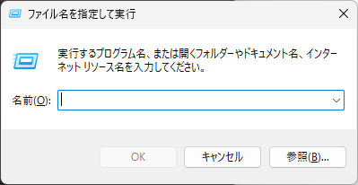 - Windowsキー+Rを押して「ファイル名を指定して実行」ウィンドウを開く。