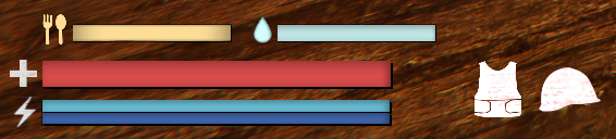 HP値は攻撃を受けたり、空腹値または水分値がゼロになると減っていく。