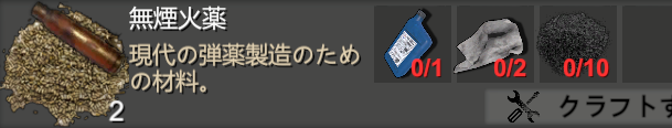 - 各弾薬のクラフトで使用する無煙火薬の必要個数は減ったが、無煙火薬のクラフトコストが高くなった。新たに黒色火薬が必要。